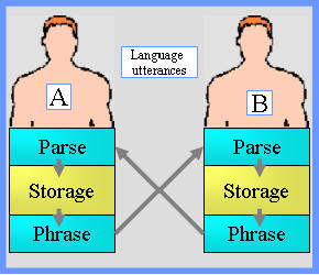 The main architecture of CommunSENS is a direct derivative of the classical physiology of the communication cycle. To let the computer be a node in the communication cycle it must be equipped with a parser, a storage medium and a a phraser. This situation is pictured in figure 1.5.